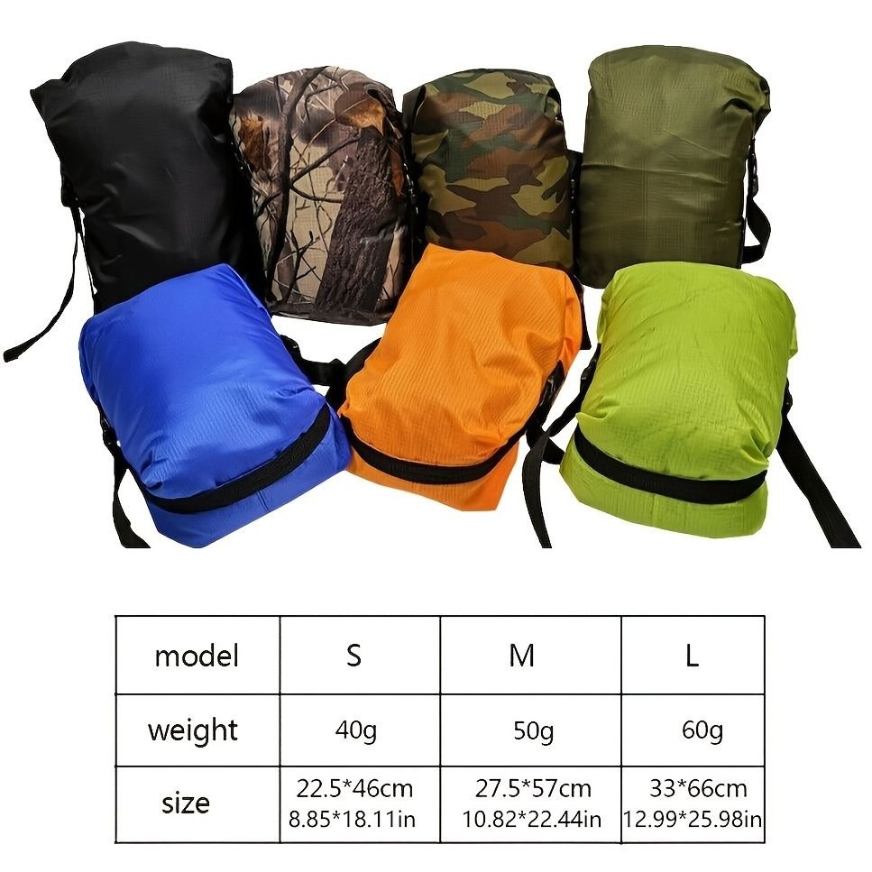 Keep your gear organized and pack efficiently with this durable waterproof compression stuff sack, designed to save space while protecting your essentials. Made from tough 210T polyester taffeta, it’s lightweight, tear-resistant, and built for outdoor durability. Ideal for camping, hiking, climbing, or travel, this stuff sack keeps your sleeping bag or gear compact, dry, and easy to carry.