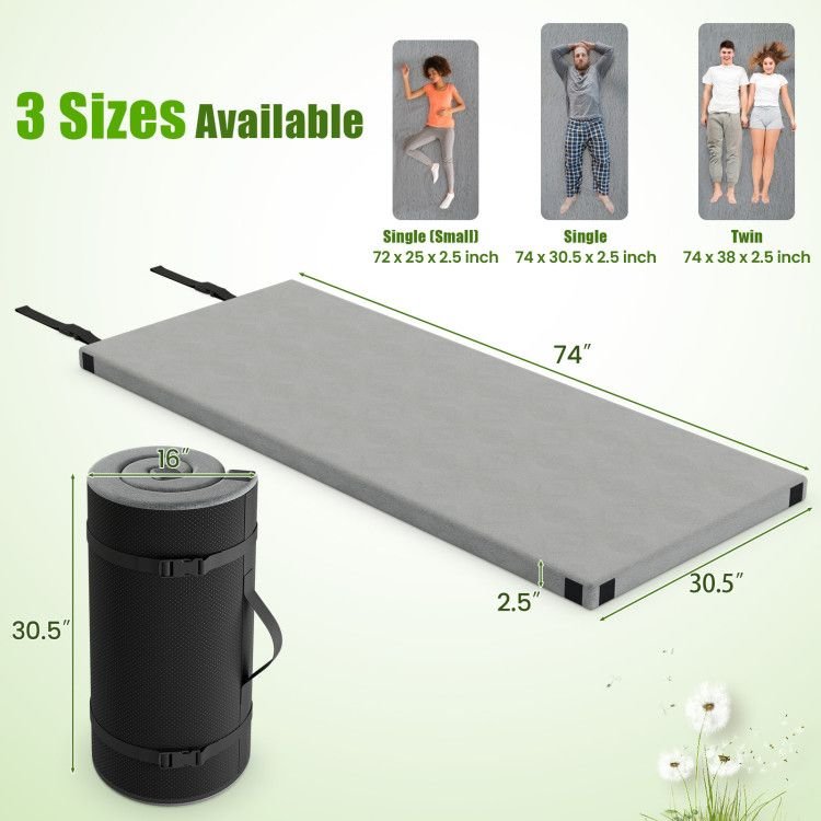 • Multiple Size Options: Available in Single (Small: 72" x 25" x 2.5"), Single (74" x 30.5" x 2.5"), and Twin (74" x 38" x 2.5")