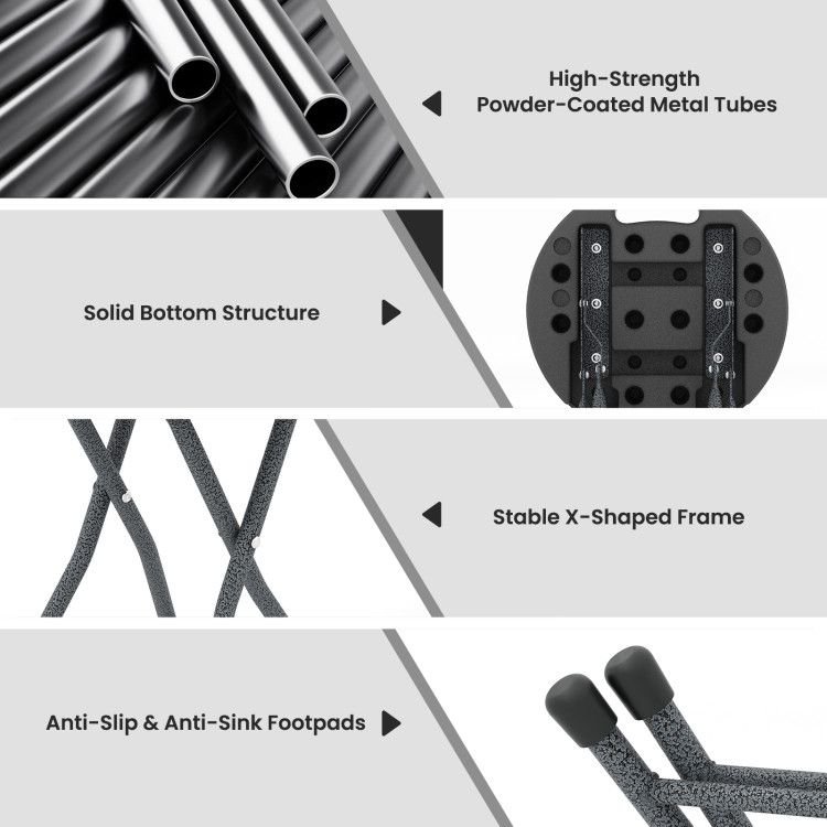 Sturdy & Stable Construction: Built with a high-strength, powder-coated metal frame reinforced by a solid bottom structure for excellent support. The X-shaped frame and anti-slip footpads provide stability and prevent wobbling.