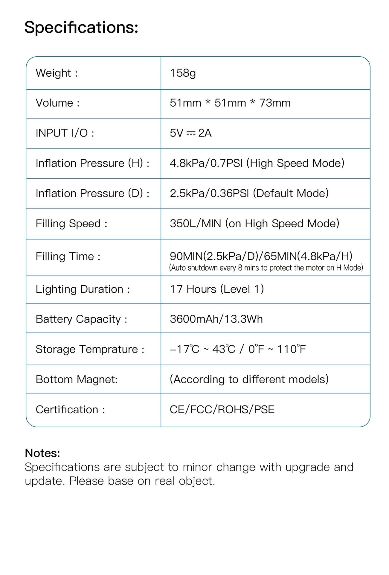 • Inflation Modes: Low-speed gear, High-speed gear