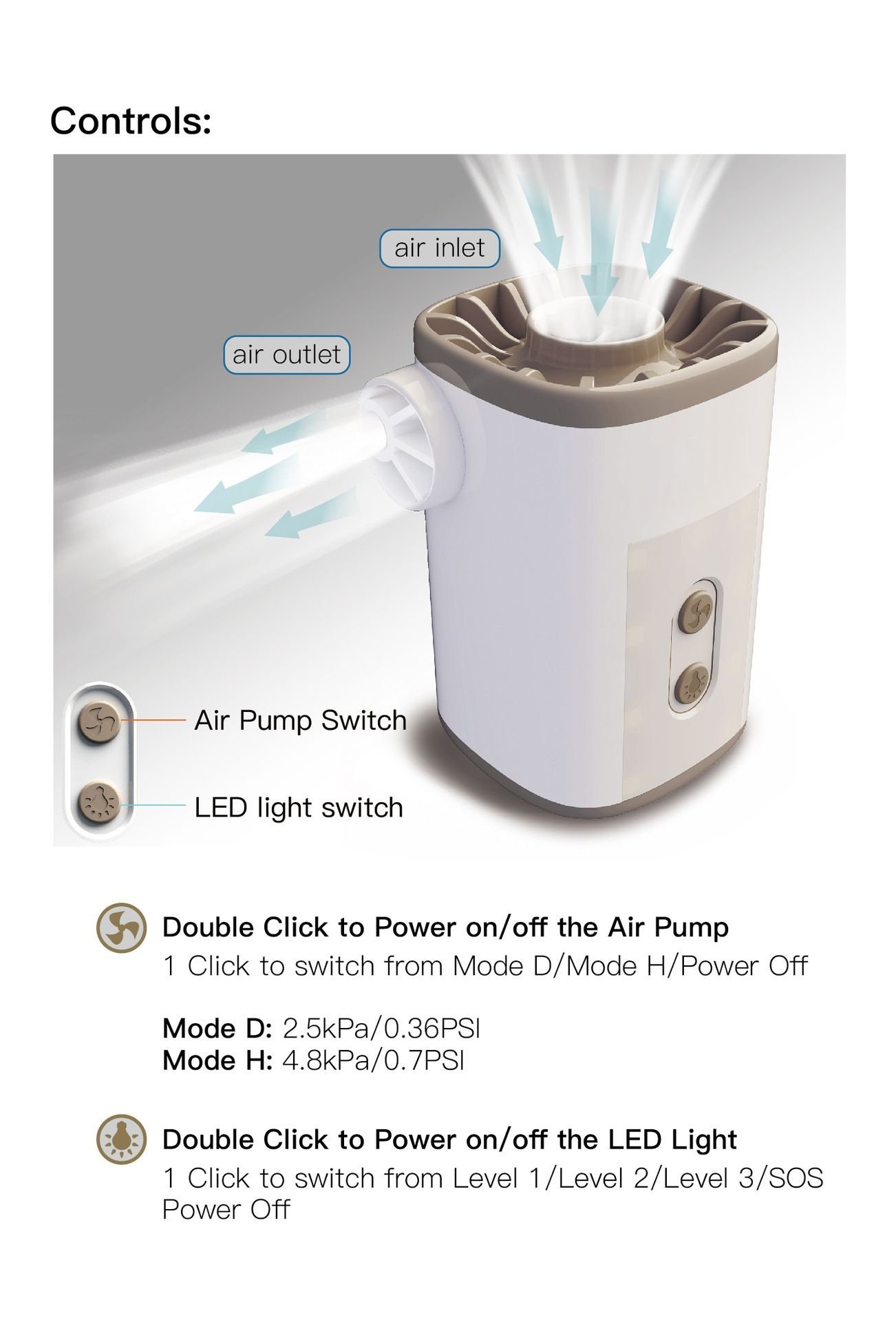 Compact, powerful, and multifunctional, this Outdoor Camping Inflatable Pump is a must-have companion for quick inflation and reliable lighting during your outdoor adventures.