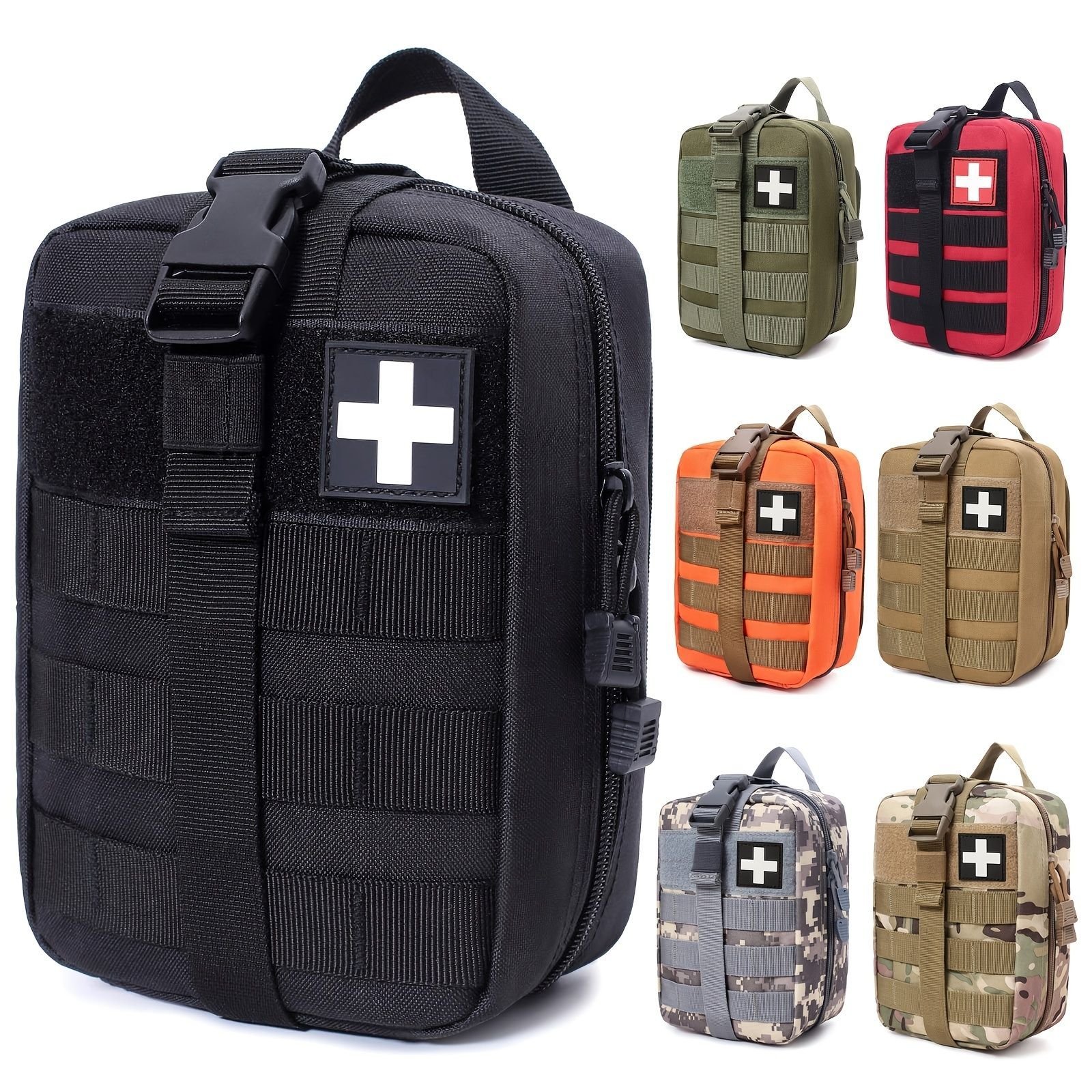 • Contents: Includes bandages, gauze, medical tools, and first aid essentials