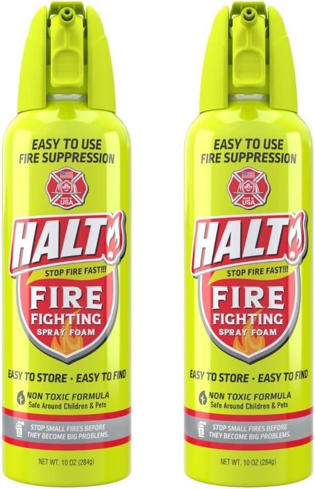 Protect your home, family, and property with the HALT! Handheld Fire Fighting Foam Spray. Compact and easy to use, this fast-acting spray extinguishes small fires in seconds, offering a practical and convenient alternative to bulky fire extinguishers. With its non-toxic, biodegradable formula, HALT! provides peace of mind in kitchens, garages, RVs, cars, boats, and more.