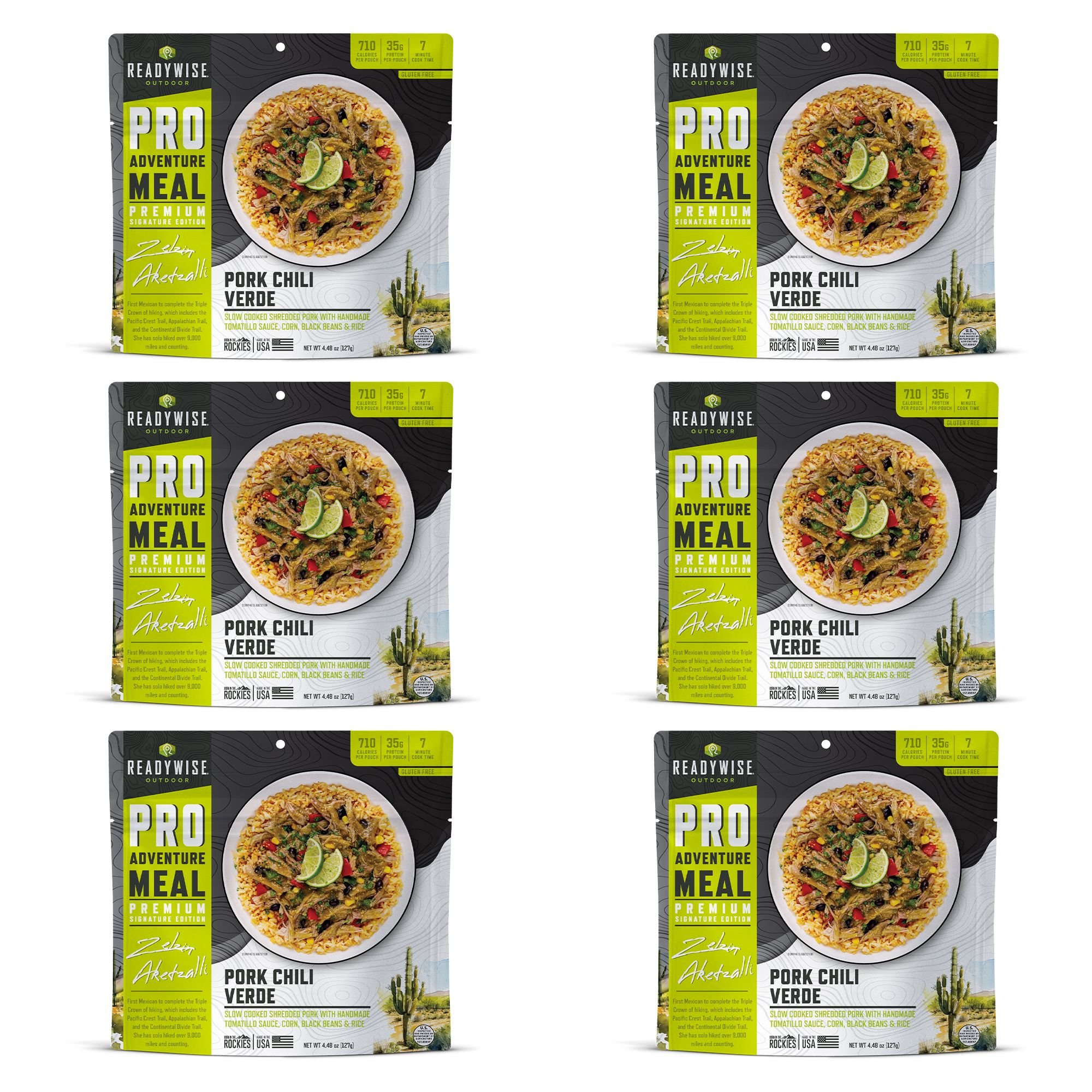 • 6 x ReadyWise Pro Adventure Meal Pork Chile Verde Pouches