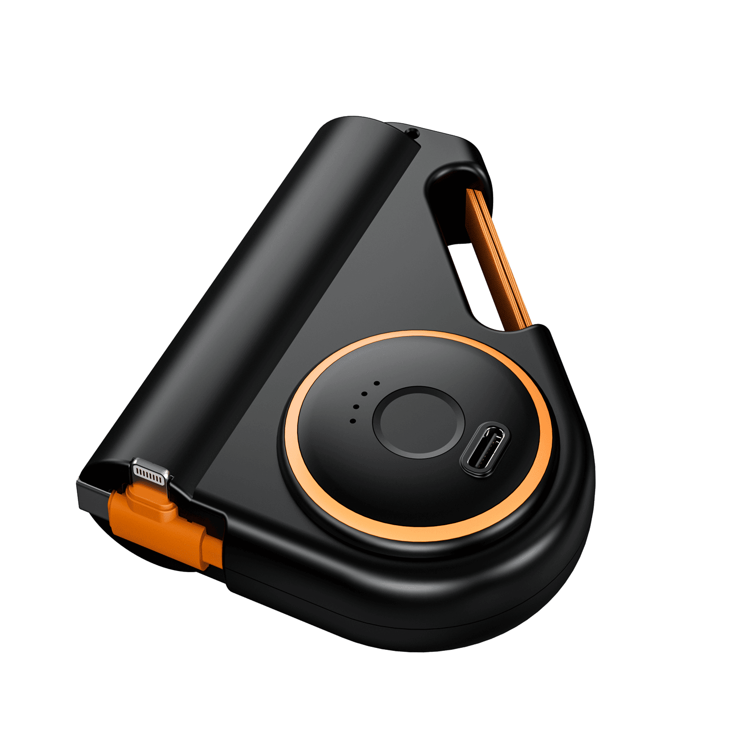 Self-Retractable Charging Cable: Built-in 2.6-foot cable with both Type-C and Lightning support, retracts for easy storage.