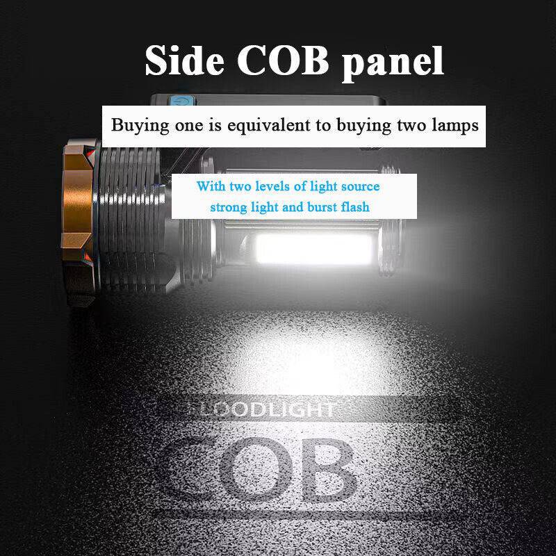 • Multifunctional Lighting Modes: Easily switch between 4 lighting modes: Strong Light, Low Light, Strobe, and COB Side Light, to suit your needs.