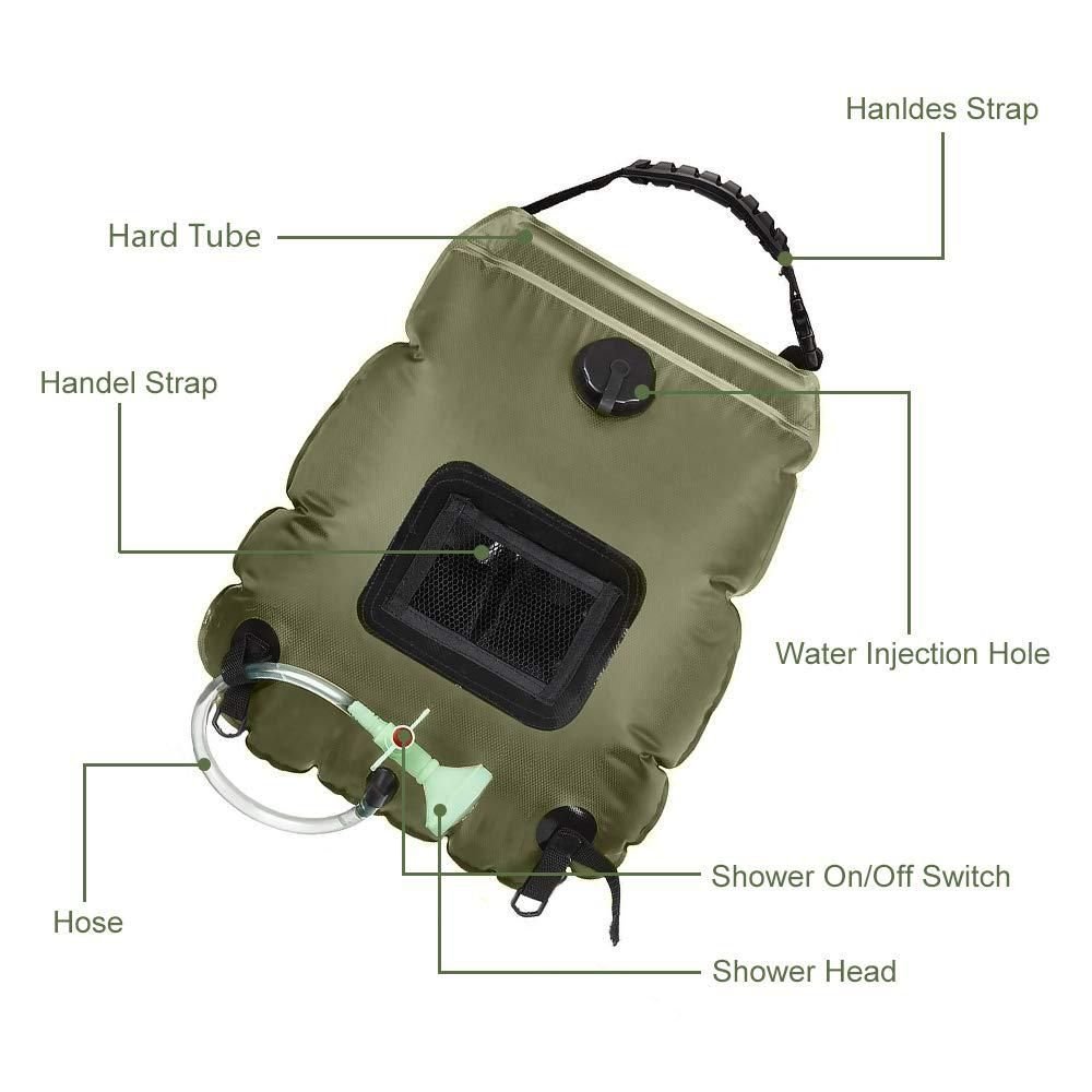 • Large Capacity: Holds up to 20 liters of water, providing enough for multiple showers.