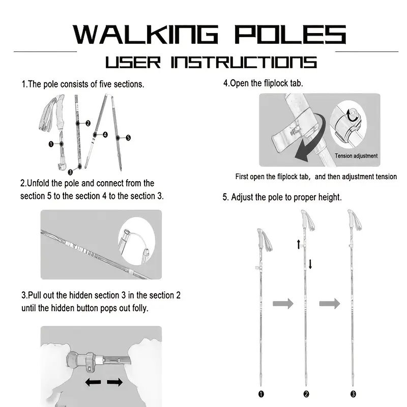 5-Section Collapsible Hiking Poles – Lightweight Trekking Poles with Secure Lock