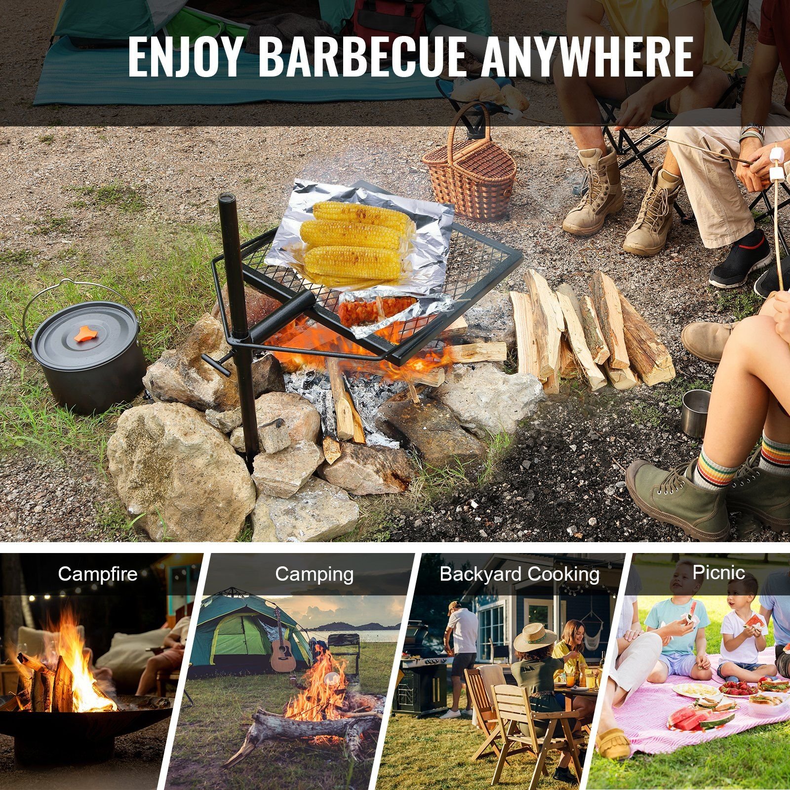 VEVOR Swivel Campfire Grill – Heavy Duty Steel Grill Grates for Fire Pits, 360° Adjustable Outdoor Cooking Equipment